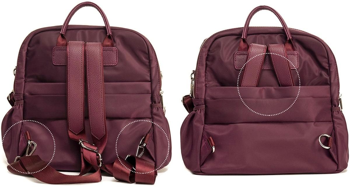 EXAMPLE: When your bag is heavy, choose the backpack position for better load distribution. Opt for the crossbody or shoulder bag position when it is relatively light.